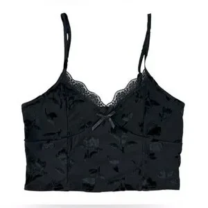 Madden Girl Black Velvet Babydoll Cami Lace Floral Y2K Whimsigoth Romantic XL