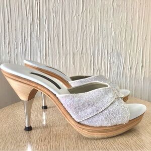 White glitter Betsey Johnson Polly heels. Htf color, nice size 10. Excellent condition for age, comes with original Box.