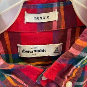 Abercrombie kids plaid button down Oxford shirt, red, great for pictures, xl