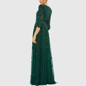 Mac Duggal 5497 Womens Green Embellished V Neck 3/4 Sleeve A Line Gown Regular