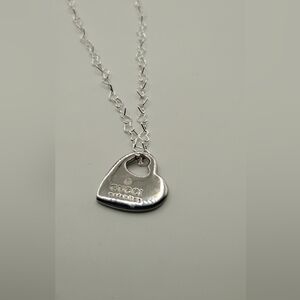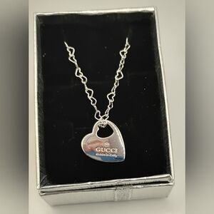Authentic Gucci charm on a heart link 925 sterling silver heart link chain. Perfect for adding elegance to any outfit and great to add to any jewelry collection. Charm is an authentic Gucci necklace charm from a Gucci necklace.