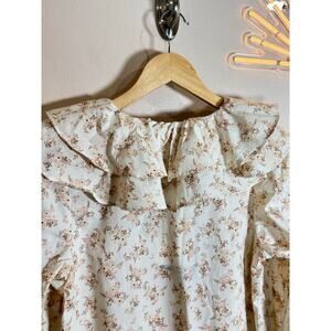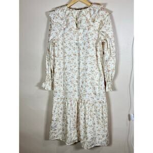 NWT Womens Floral midi Dress 100% Cotton Ruffle Puff Sleeve Cottage Prairie S