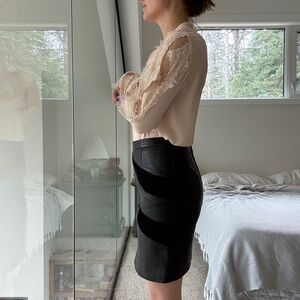Maje Black leather and suede Pencil Skirt 38 (small)