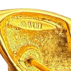 Adorable vintage Avon brooch featuring a mother cat and her playful kitten linked together by a fine chain. The kitten carries a sparkling clear rhinestone accent, adding charm to this whimsical design. Both pieces are finished in rich gold tone and are signed © AVON on the reverse.