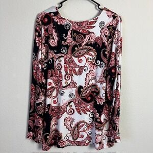 Chico's Paisley Print Long Sleeve Top Sz 3 (XL) Artsy Elegant Casual Boho