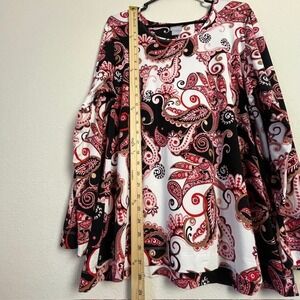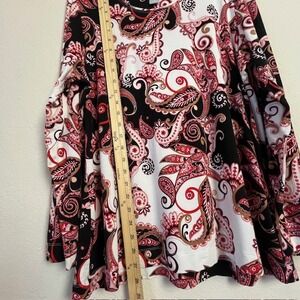 Keywords: Chico's top, Paisley print top, Long sleeve blouse, Women's XL top, Red black white top, Bohemian top, Elegant blouse, Casual top, Plus size top, Chico's size 3, Statement top, Patterned blouse, Red paisley top