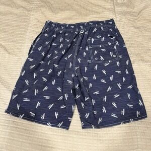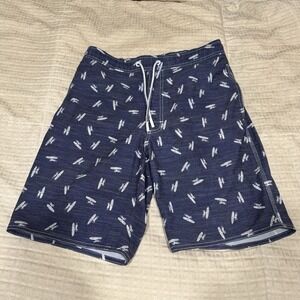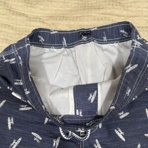 Johnnie-O Swim Trunks Mens Small Navy Blue AOP Logo Lined Bathing Suit