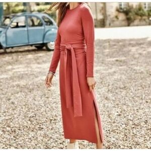 Pure J. Jill NWT Large Petite Brick Red Orange Pima Cotton Side Slit Midi Dress
