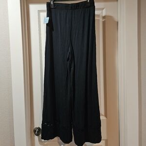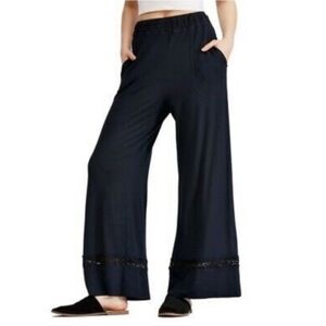 Free People Maddie PJ Lounge Pants High Rise Wide Leg Lace Stretchy Black Sm NWT