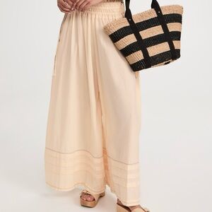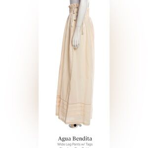 Agua Bendita Pants Palazzo All cotton handmade hand stitched cream Tag: M L NWT