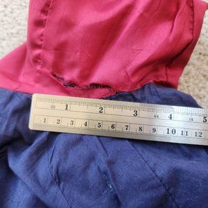 This is one of my favorite summer blazers (I have my own in a different size). This is such a classic plaid and if you cuff the sleeves, the pop of red is a nice touch. This blazer is immaculate with no signs of wear on the outside. The inside has a tear in the lining at the left armpit (pictured). Could be repaired, but since it's on the inside of the sleeve you don't see if if you're not looking for it. Otherwise perfect--no stains or odors.