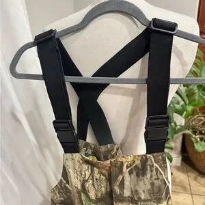 Classic Cabela’s hunting bibs in Realtree Advantage Timber camouflage. Medium/Regular fit with adjustable X-back suspenders and quick-release buckles. Durable cotton-poly blend—great for deer, turkey, waterfowl, or general outdoor work.