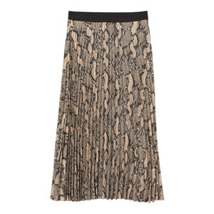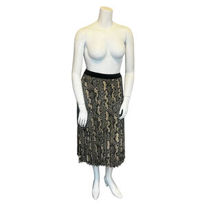 H&M Snakeskin Print Plisse Pleated Midi Skirt, L, Tan, Black & Grey