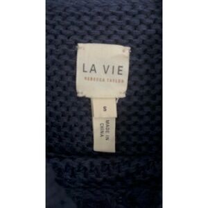 La Vie Rebecca Taylor Navy Blue Peplum Knit Sweater Top Button Detail