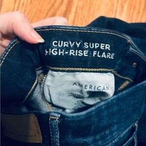 AE 6 long curxy high waisted flare jeans dark indigo American eagle