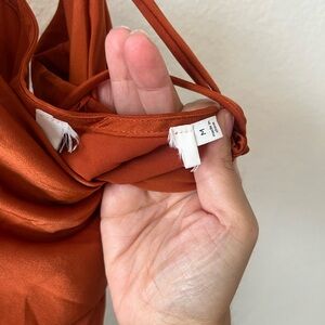 ASTR The Label Gaia Orange Rust Cowl Neck Satin Midi Slip Dress Sz M Revolve