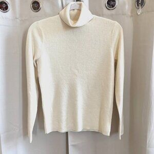 Old Navy Women Sweater Cream Wool Blend Turtleneck Preppy Heritage Neutral 19166
