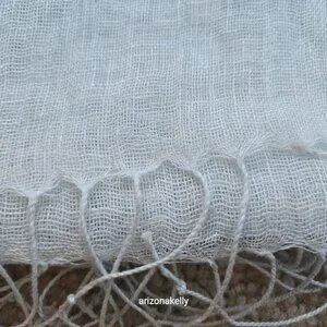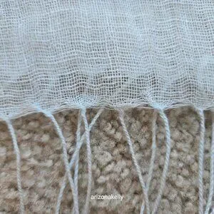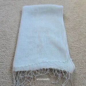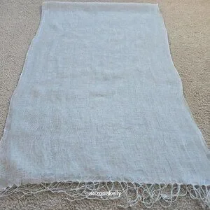 It's hard to tell from the pictures, but this scarf is a very pale blue. No flaws--excellent condition. No holes, pulls, runs, stains, pet hair, or odor.