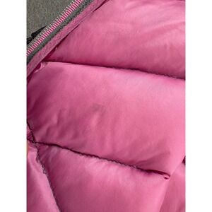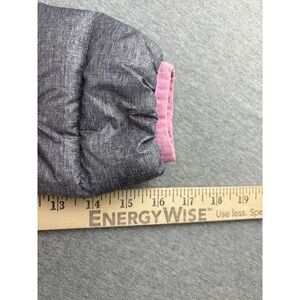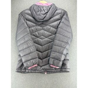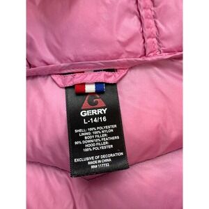 Keywords: Gerry, girls puffer jacket, lightweight jacket, hooded jacket, full zip jacket, gray heather, pink trim, size L, size 14, size 16, kids outerwear, fall jacket, winter jacket, 650 fill power