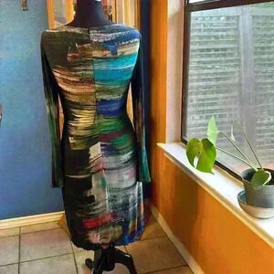 This dress is a must-have for any fashion-forward woman, available in size 6 and suitable for all seasons. The dress is beautifully crafted with striped patterns and colorful accents, making it a unique addition to your wardrobe. Get ready to make a statement with this dress that is sure to turn heads wherever you go!