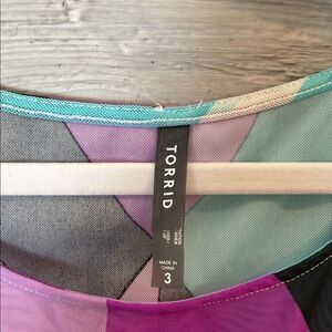 Torrid Vibrant Long Sleeve Sheer Dress in Purple and Teal