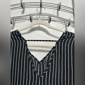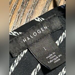 Halogen tunic blouse black white rope pattern women’s L double v-neck classic