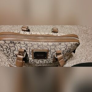 Calvin Klein Tan and Brown Monogram Satchel EUC