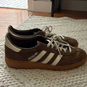 Classic Adidas sneakers in chocolate brown. Comfortable and stylish for daily wear.