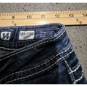Girls Miss Me Bootcut Jeans Size 14 Medium Wash Thick Stitch Embellished 24x28.5