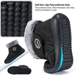 Women’s Black Winter Snow Boots Warm Waterproof Fur Lined Slip-Ons