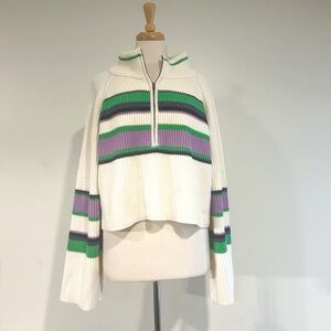 Free People Greta Stripe Half-Zip Mock Neck Sweater Size Large NWT