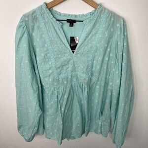 NWT Torrid Blouse Size 2X Blue Cotton Eyelet Floral Lightweight Airy
