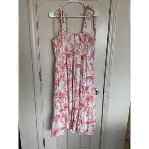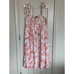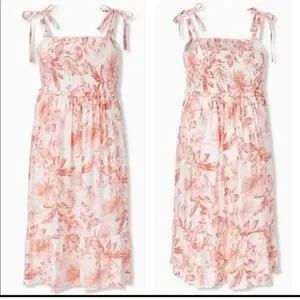 Torrid Coral Floral Tie Shoulder Midi Dress Summer Tropical Palm Print Size 2 g1