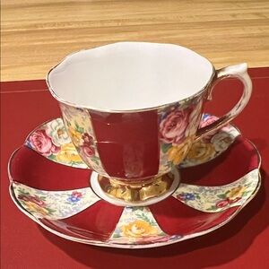 # 0580 + Royal Albert Crown Bone China Red and Gold Teacup and Saucer Set