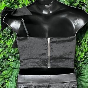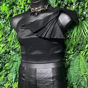 Bebe Top 12 Black One Shoulder Ruffle Sleeveless Party Cocktail Made In USA 3017