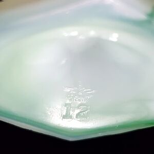Beautifully done green & white swirled slag glass that replicates a fine marble, Akro Agate Company. They specialized marbles and these little glass treasures.