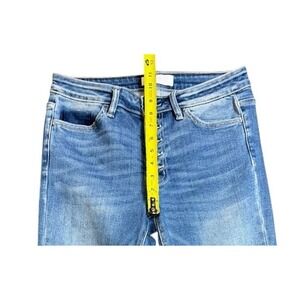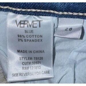 The Vervet Women's Size 28 Button Fly Distressed Ripped Ankle Skinny Denim Blue Jeans are a stylish and versatile addition to any wardrobe. Made from a blend of polyester, spandex, and cotton, these jeans offer comfort and stretch for all-day wear. The distressed detailing and ankle rip add a trendy touch to the classic denim design, making them perfect for any season. With a 5-pocket design and a mid-rise fit, these jeans combine fashion and functionality for a flattering and on-trend look.
