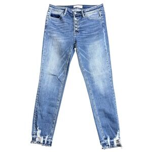Vervet Womens Size 28 Button Fly Distressed Ripped Ankle Skinny Denim Blue Jeans