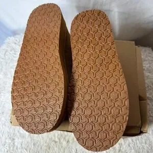 Fitory Brown Suede Shearling Lined Clog Slippers Platform Wedge Women's Size 10