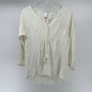White Juniors M Long Sleeve Popover Lace Detail Blouse Tassel No Boundaries Brand Relaxed Fit High Low Hem Summer Beach Casual Blouse