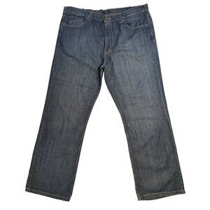 Claiborne ~ Men's straight fit, bootcut jeans. Size 40x32. Dark wash blue. Style # MERU4525.