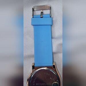 Michael Kors Women's Watch with a blue silicone strap, Rose gold-tone Face. Needs a battery 🔋