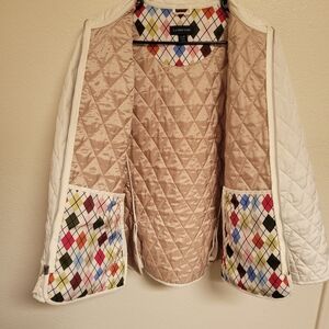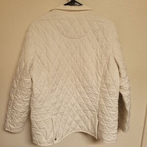 Stay warm and stylish with this elegant white quilted jacket. Perfect for any occasion, it offers both comfort and a chic look.