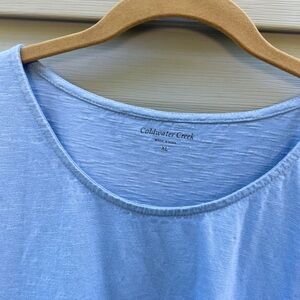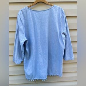 Coldwater Creek XL blue cotton popover Pom Pom hem blouse bohemian Lagenlook