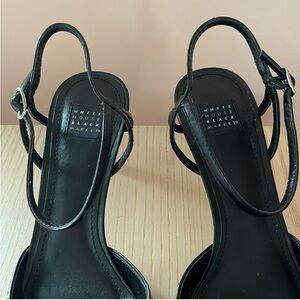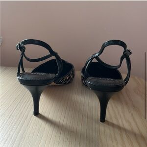 WHITE HOUSE BLACK MARKET Leopard Calf Hair Pointed Toe Strappy Slingbacks. Size 7. Excellent preloved condition. This strappy slingback features a 2 inch heel. Finished with an adjustable ankle strap that allows you to find your own flawless fit. Perfect for a wedding, party, prom, cocktails, or any event that requires a striking heel. Excellent preloved condition. Please see photos for wear including bottom of soles.