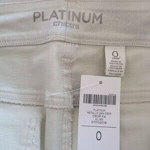 Chico's Platinum Pants Metallic Silver Crop Jeans NWT Size 0 US Sz 4