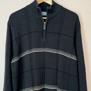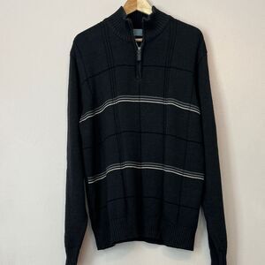 Oscar de la Renta Quarter Zip Cotton Knit Sweater Stripe Classic Pullover Gray Men XL