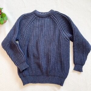 Vintage Men’s Henry Miller 100% British Wool Blue Speck Knit Crewneck Fisherman Sweater.