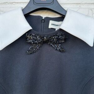 New Shushu/Tong Black Beaded Bow Minidress Size Small