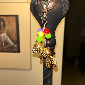 Sparkling bear keychain with colorful balloons. Features red, green, yellow, purple, and golden accents. Nwot